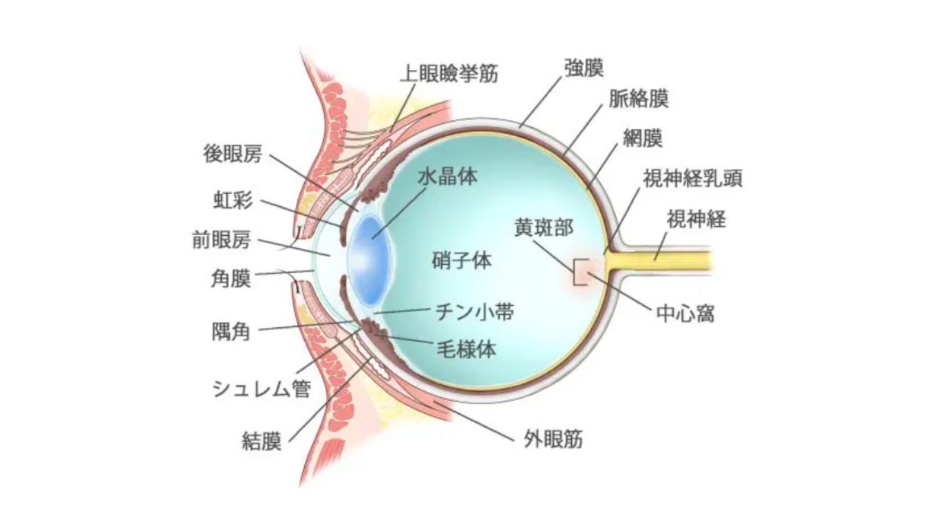 目の焦点を調節するのは、カメラのレンズにあたる水晶体と、水晶体の厚みを調節する(カメラの絞りにあたる)毛様体とチン小帯の共同作業になっています。水晶体と毛様体を結ぶ放射状にならんだ細い繊維状のものをチン小帯といい、毛様体の中にある線維組織を毛様体筋と呼ばれています。ところが、頸椎が歪むとチン小帯を支配している自律神経が圧迫され、毛様体筋が正常に働けなくなります。よって、弛めなければならないときに弛まず、縮む必要があるのに縮まないといったことが起こるのです。